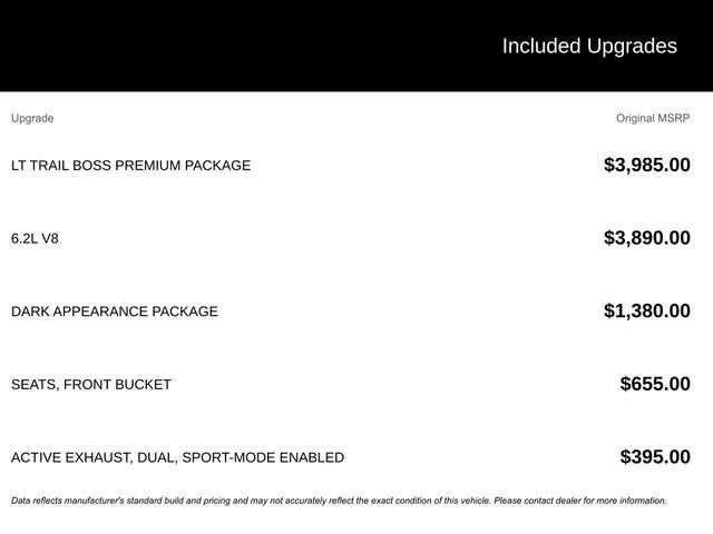 2026 Chevrolet Silverado 1500 LT Trail Boss 4WD 10-Speed Automatic EcoTec3 6.2L V8 Summit White Price includes the following incentives: $2500 - Chevrolet Consumer Cash Program. Exp. 03/31/2026 $750 - Chevrolet Bonus Cash. Exp. 03/31/2026