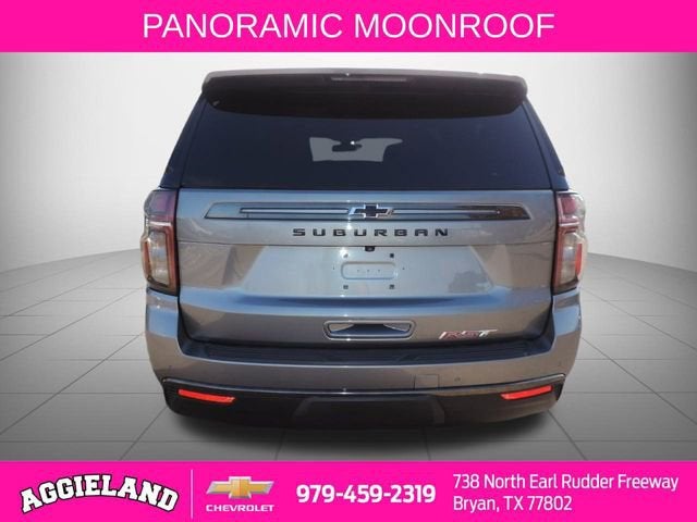 The 2022 Chevrolet Suburban RST in Satin Steel Metallic with leather interior delivers a powerful combination of full-size capability, premium comfort, and advanced technology, making it an excellent choice for families, road trips, and drivers who need space and performance alike.ENTERTAINMENT FEATURESTouchscreen displayAM/FM audio systemApple CarPlayAndroid AutoBluetooth® hands-free connectivitySteering wheel-mounted audio controlsAuxiliary audio inputMP3 capabilityPremium sound systemWiFi hotspot capabilitySAFETY FEATURESFront Collision WarningFront Collision MitigationLane Departure WarningLane Keeping AssistAutomatic high beamsBlind Spot MonitorRear Cross-Traffic AlertBack-up cameraFront, side, and curtain airbagsPassenger airbag sensorTire pressure monitoring systemVehicle stability controlTraction controlChild safety locksSTANDARD FEATURESLeather seating surfacesPower-adjustable driver and passenger seats with lumbar supportSeat memoryHeated front seatsCruise controlKeyless entryKeyless startRemote engine startPower windowsPower door locksAir conditioningMulti-zone climate controlAdjustable steering wheelThird-row seatingSecond-row captains chairsMECHANICAL FEATURES5.3L V8 engine10-speed automatic transmissionFour-wheel drive4-wheel disc brakes with ABSBrake assistLocking/limited-slip differentialAir suspensionAuxiliary transmission oil coolerWhy Buy from Aggieland Chevrolet in Bryan, Texas?• Conveniently located at 738 N Earl Rudder Fwy, Bryan, TX 77802• Known for outstanding customer service and repeat customers• Transparent, no-pressure buying experience• Efficient process that respects your time• Proud supporter of the Brazos Valley communityIf youre searching for a dependable full-size SUV with premium features, advanced safety technology, and impressive capability, the 2022 Chevrolet Suburban RST is a smart choice. Visit Aggieland Chevrolet today and experience why so many drivers trust us for their next vehicle.Hablas espanol? Nuestro equipo esta listo para ayudarte en Aggieland Chevrolet. Llamanos hoy mismo al 979-459-2307!