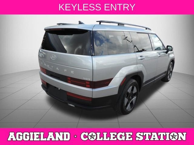 The 2024 Hyundai Santa Fe Hybrid SEL in Shimmering Silver with Black interior delivers efficient hybrid performance, spacious three-row versatility, and advanced safety technology for modern family driving.ENTERTAINMENT FEATURESAM/FM RadioHD RadioSatellite RadioApple CarPlayAndroid AutoBluetooth® ConnectivitySmart Device IntegrationMP3 CapabilitySAFETY FEATURESBlind Spot MonitorFront Collision MitigationLane Departure WarningLane Keeping AssistDriver MonitoringRear Parking AidStability ControlTraction ControlCruise Control Steering AssistTire Pressure Monitoring SystemSecurity SystemSTANDARD FEATURESHeated Front SeatsPower Driver SeatDriver Adjustable LumbarLeather Steering WheelPremium Synthetic Seats3rd Row SeatingKeyless EntryKeyless StartRemote Engine StartHands-Free Power LiftgateMulti-Zone Climate ControlPower WindowsPower Door LocksCruise ControlEXTERIOR FEATURESLED HeadlightsDaytime Running LightsAutomatic High BeamsHeated Power MirrorsIntegrated Turn Signal MirrorsPrivacy GlassRear SpoilerAluminum WheelsAll-Season TiresMECHANICAL FEATURES1.6L Turbocharged Hybrid Engine6-Speed Automatic TransmissionFront-Wheel DriveLithium-Ion Traction BatteryHybrid Electric Motor4-Wheel Disc Brakes with ABSBrake AssistGas-Pressurized Shock AbsorbersMulti-Link Rear SuspensionTECHNOLOGY FEATURESBack-Up CameraTelematicsTrip ComputerSmart Device IntegrationWHY BUY FROM COLLEGE STATION NISSAN?At College Station Nissan, we provide a hassle-free buying experience with a knowledgeable team, transparent pricing, and a commitment to customer satisfaction. Proudly serving College Station, Bryan, and surrounding communities.Hablamos espanol! Visitanos hoy en College Station Nissan y agenda tu prueba de manejo.